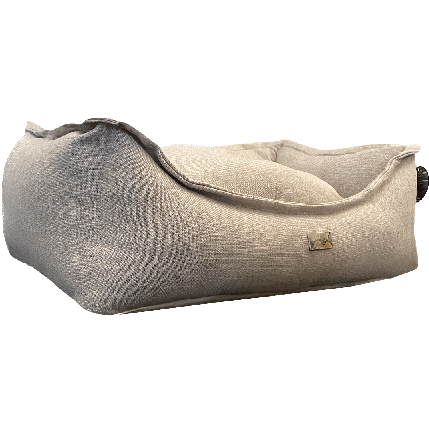 Cuscino per cani Giza Lino: rivestimento 100% lino, sfoderabile e lavabile a 40°, imbottitura con bordo alto e fondo antiscivolo. Made in Italy.