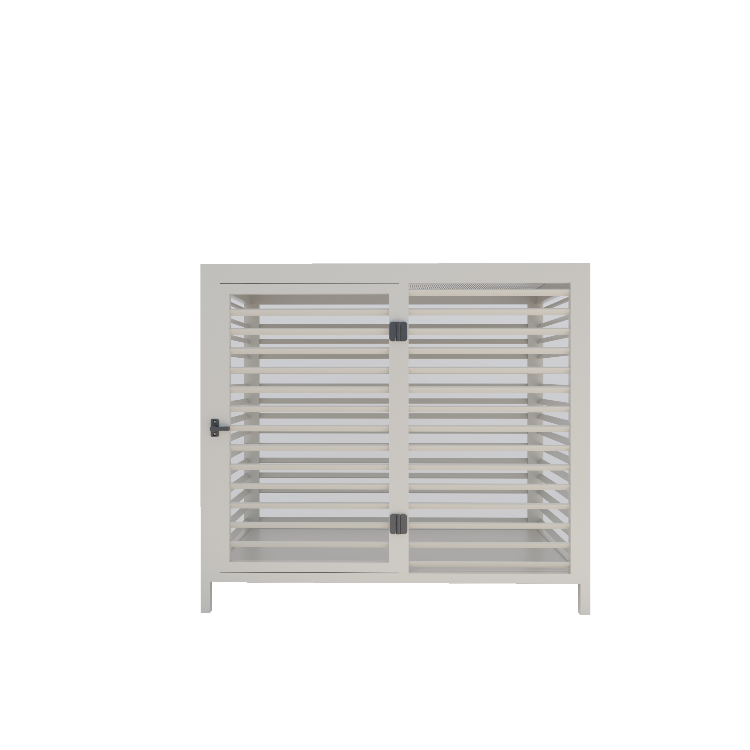 Indoor kennel per cani Japandi Tortora Hera: kennel da casa in ferro verniciato color tortora, RAL 7032 e robusto. Made in Italy, disponibile in due misure.