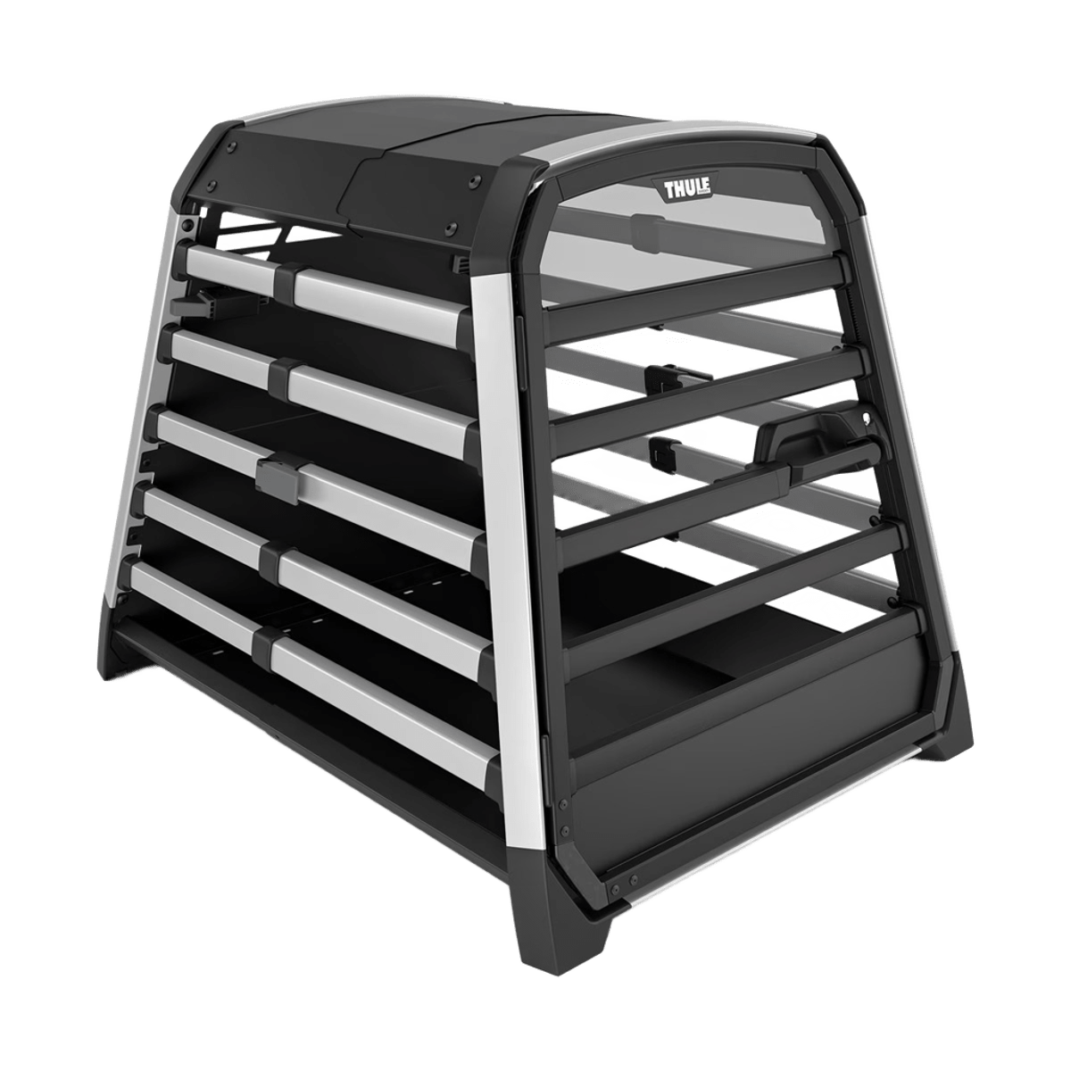 Thule Allax Compact: trasportino in alluminio per auto con baule poco profondo. Certificato TÜV SÜD, crash tested, con porta ammortizzata e botola di emergenza.