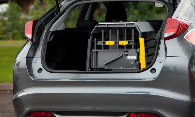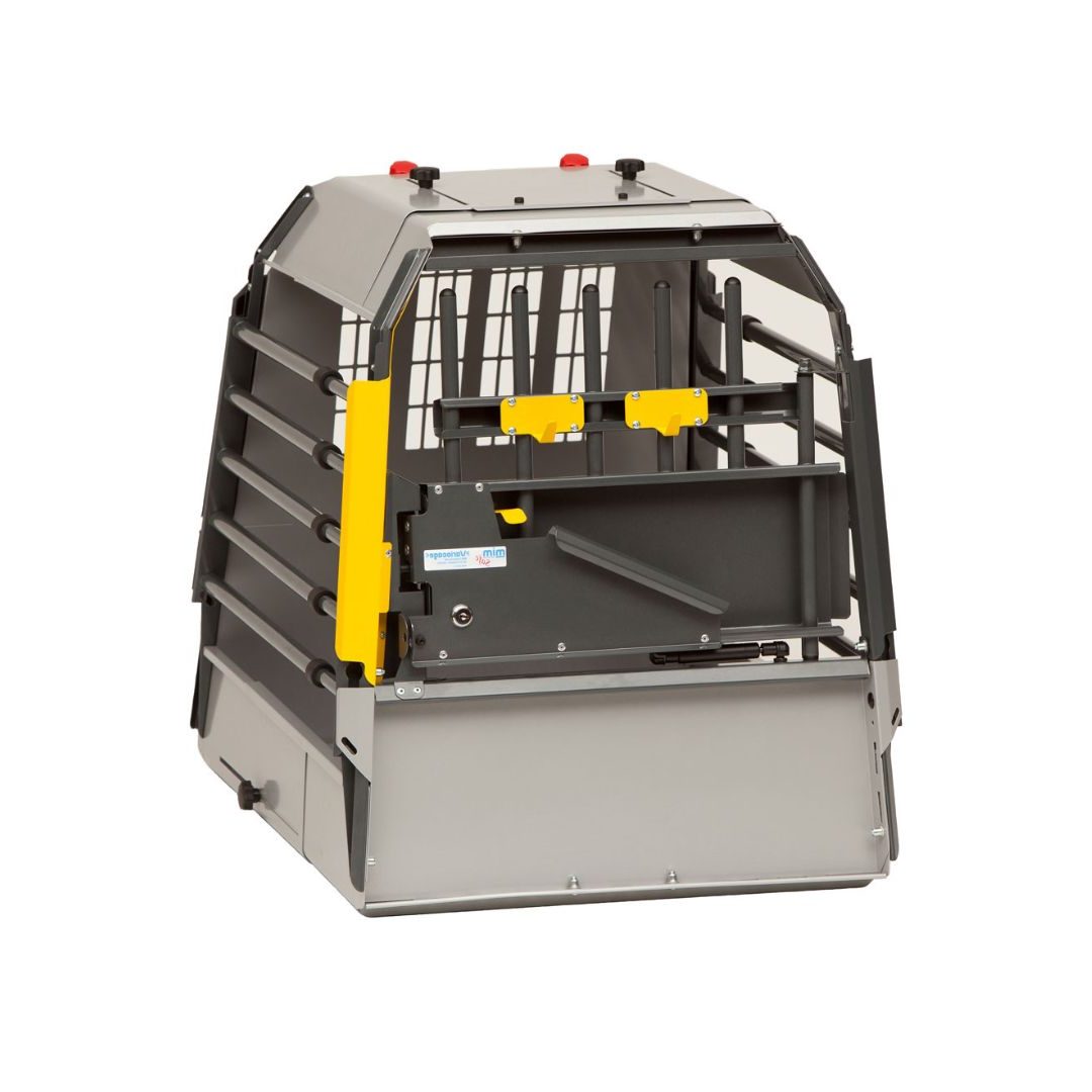 Trasportino per cani Vario Compatto: kennel auto certificato crash tested. Regolabile in profondità fino a 25 cm, con botola di fuga. Adatto a SUV, Station Wagon, van e utilitarie.